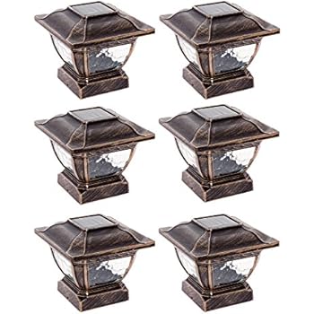 Iglow 12 pack copper outdoor garden 4 x 4 solar led post deck cap square fence light landscape lamp wood bronze.